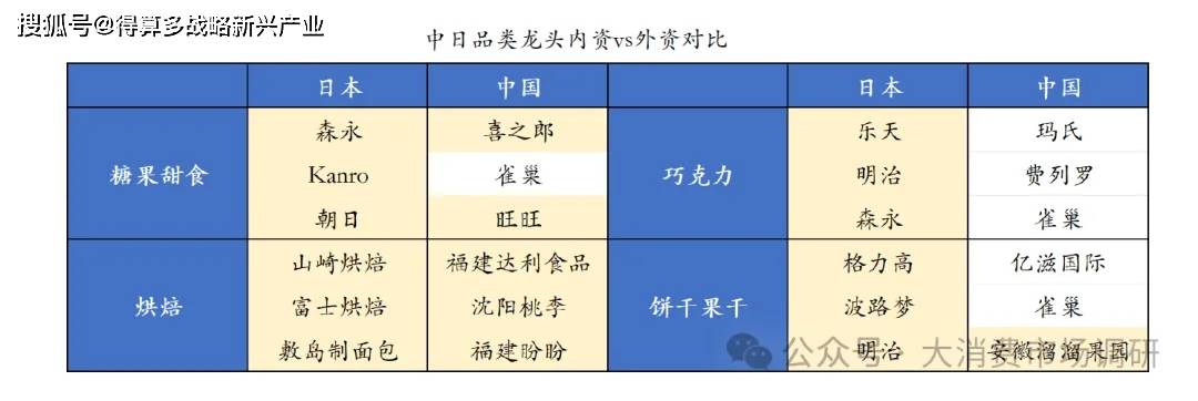 ? 中國(guó):對(duì)標(biāo)中國(guó)來(lái)看,雖然我國(guó)企業(yè)在烘焙等品類(lèi)上也占據(jù)了頭部主導(dǎo)地位,但在巧克力、餅干果干等偏西式的品類(lèi)上,外資企業(yè)仍相對(duì)領(lǐng)先。