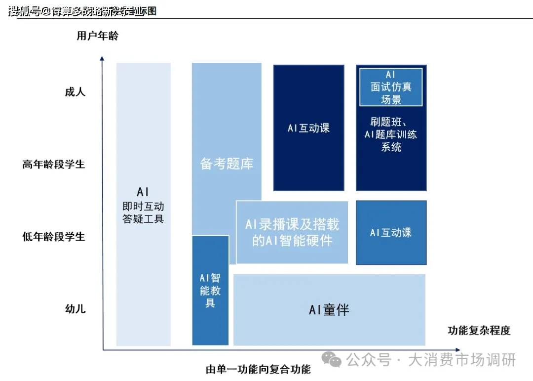 高年齡段多功能 AI 教育軟件:學(xué)生、成人自驅(qū)力強(qiáng),強(qiáng)調(diào)效率,效果、性價(jià)比