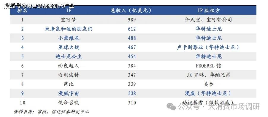 迪士尼旗下 IP 占據(jù)行業(yè)頭部半壁江山。截至 2024 年,全球累計收入前 10 的商業(yè) IP 中,迪士尼獨占五席,涵蓋米老鼠、公主等經(jīng)典動畫角色,也包括星球大戰(zhàn)等大眾娛樂內(nèi)容,展現(xiàn)出迪士尼 IP 矩陣強大的市場影響力。